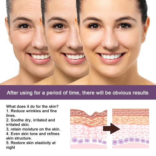 Our Bakuchiol Serum contain bakuchiol, tremella fungus extract, acetyl hexapeptide-8. It can reduce wrinkles and fine lines, soothe dry, irritated skin, retain moisture on the skin, even skin tone and refines skin structure, restore skin elasticity at night. Its usage is simple: After cleansing and toning, take an appropriate amount of essence and apply it evenly on the facial skin, and massage gently in circular motions with your hands to allow it to be absorbed. Moisturizes the skin, beautifies the skin and improves dull and rough skin.