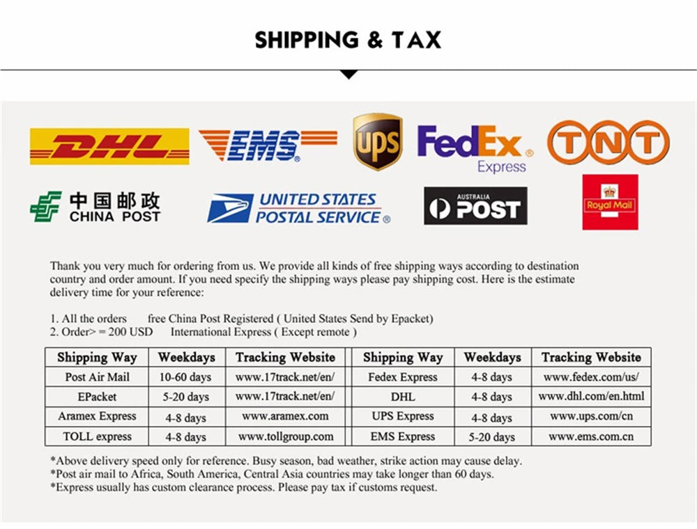 When the order exceeds $ 230,Free shipping DHL / EMS / Fedex / Aramex