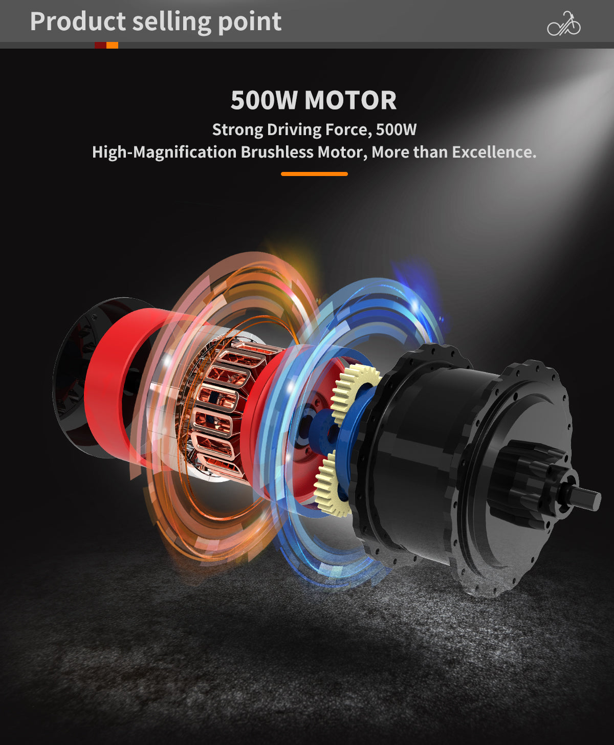 Motor: 500W Rear brushless hub motor